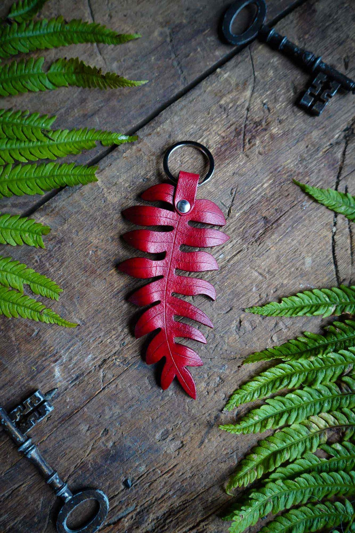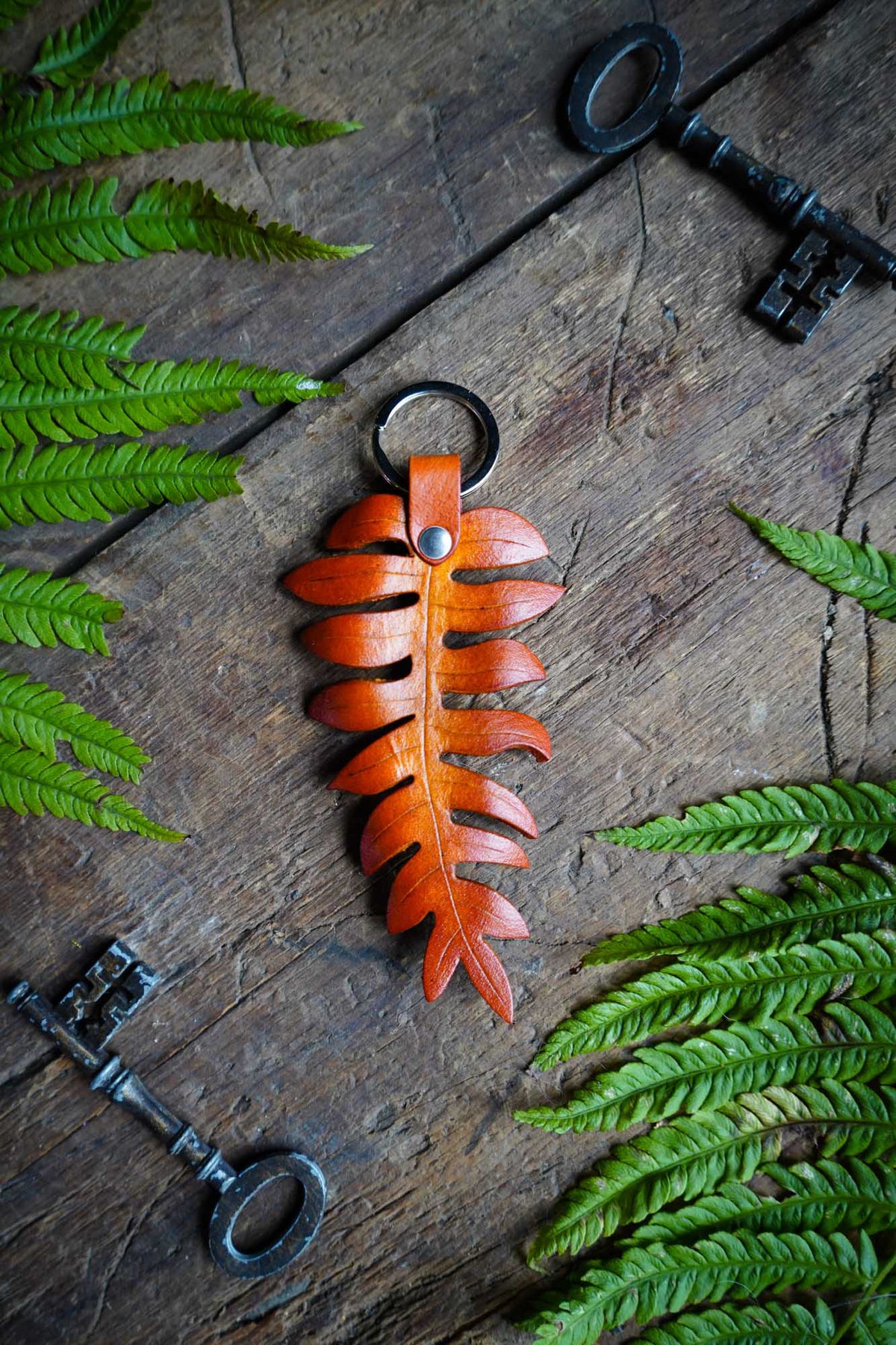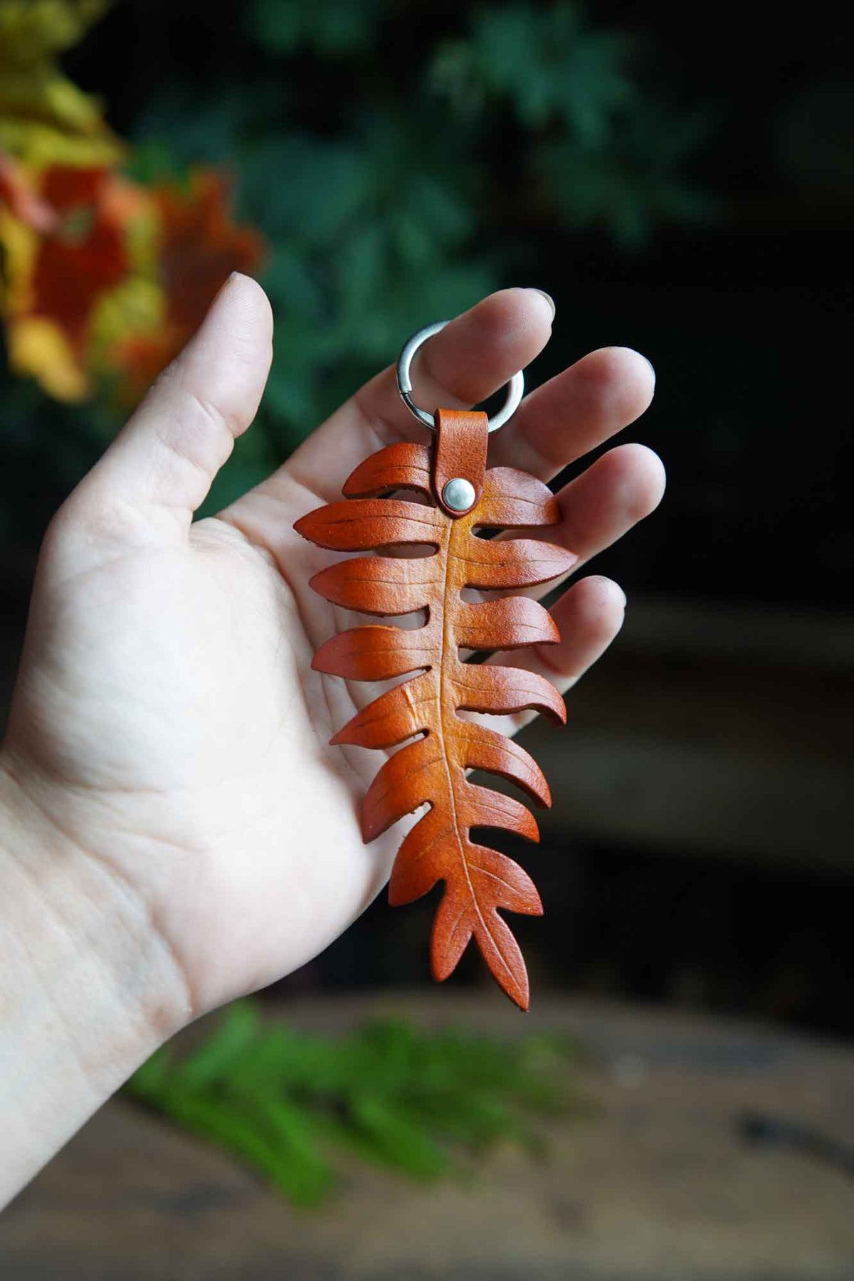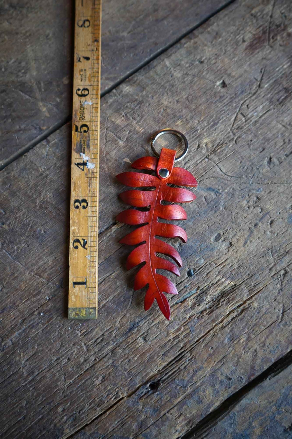 Carry the rich colors of fall with our handmade Fern leather keychains. The perfect gift for any forest lover, these bold autumn leaves will bring the forest floor to your key ring or make a bold bag charm.
