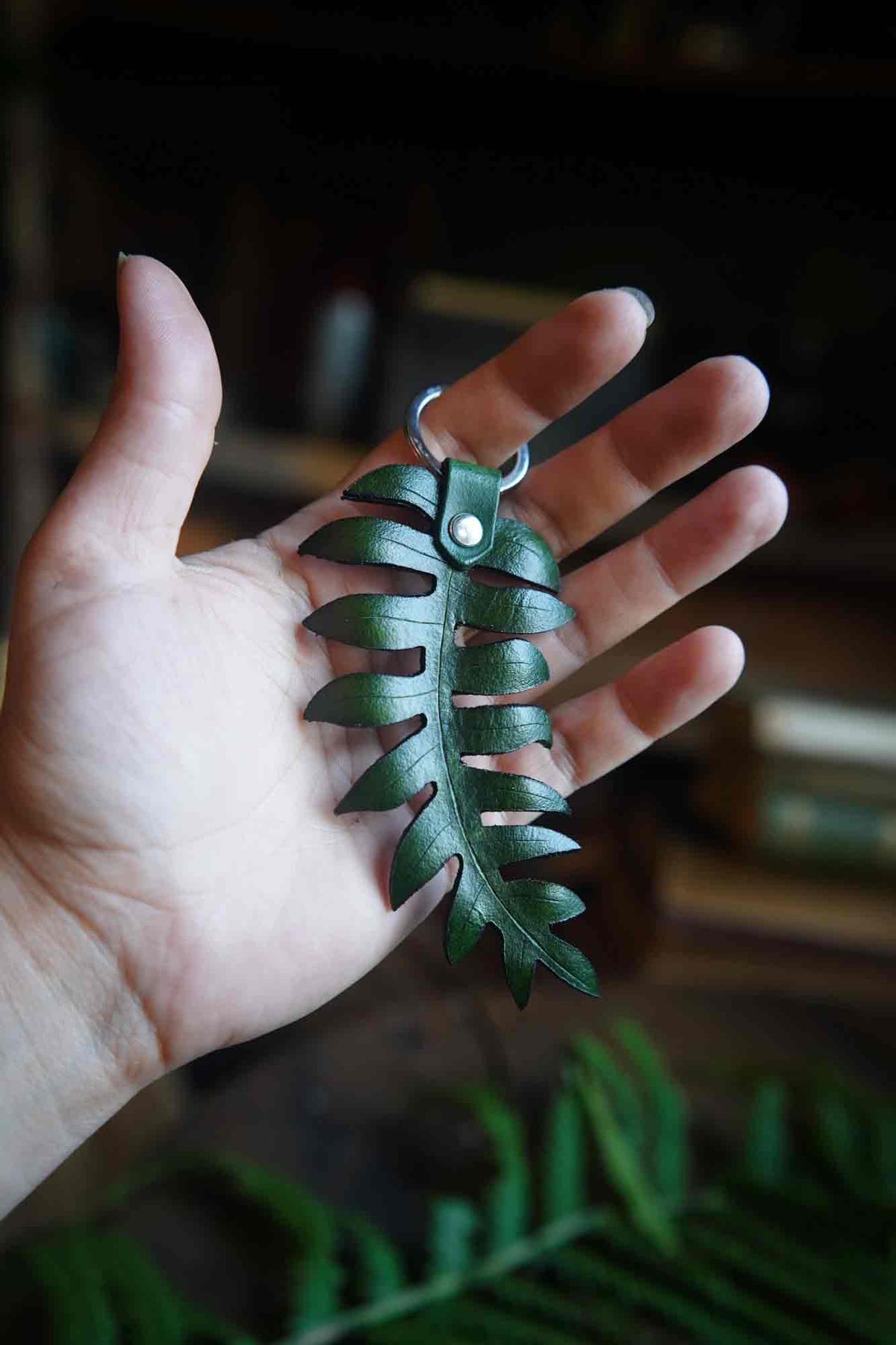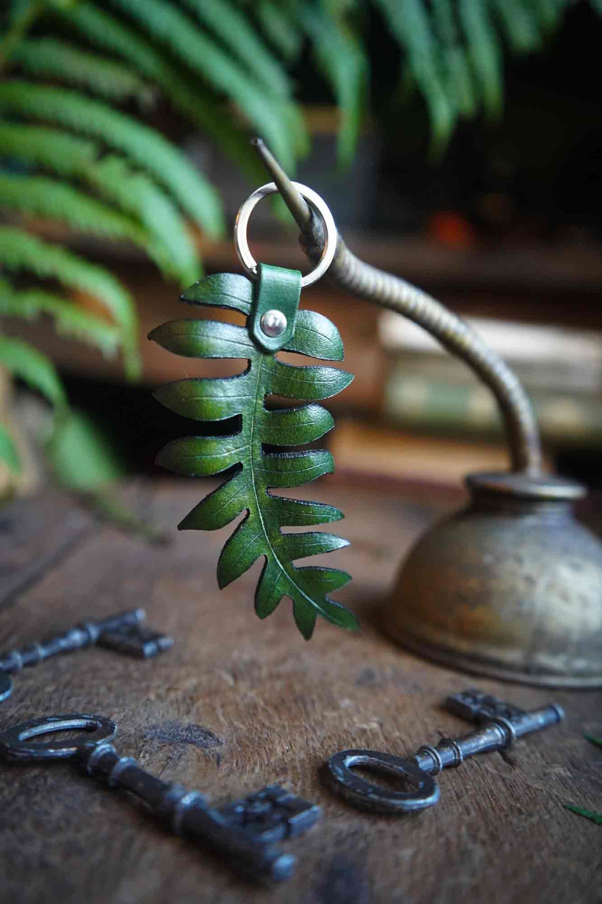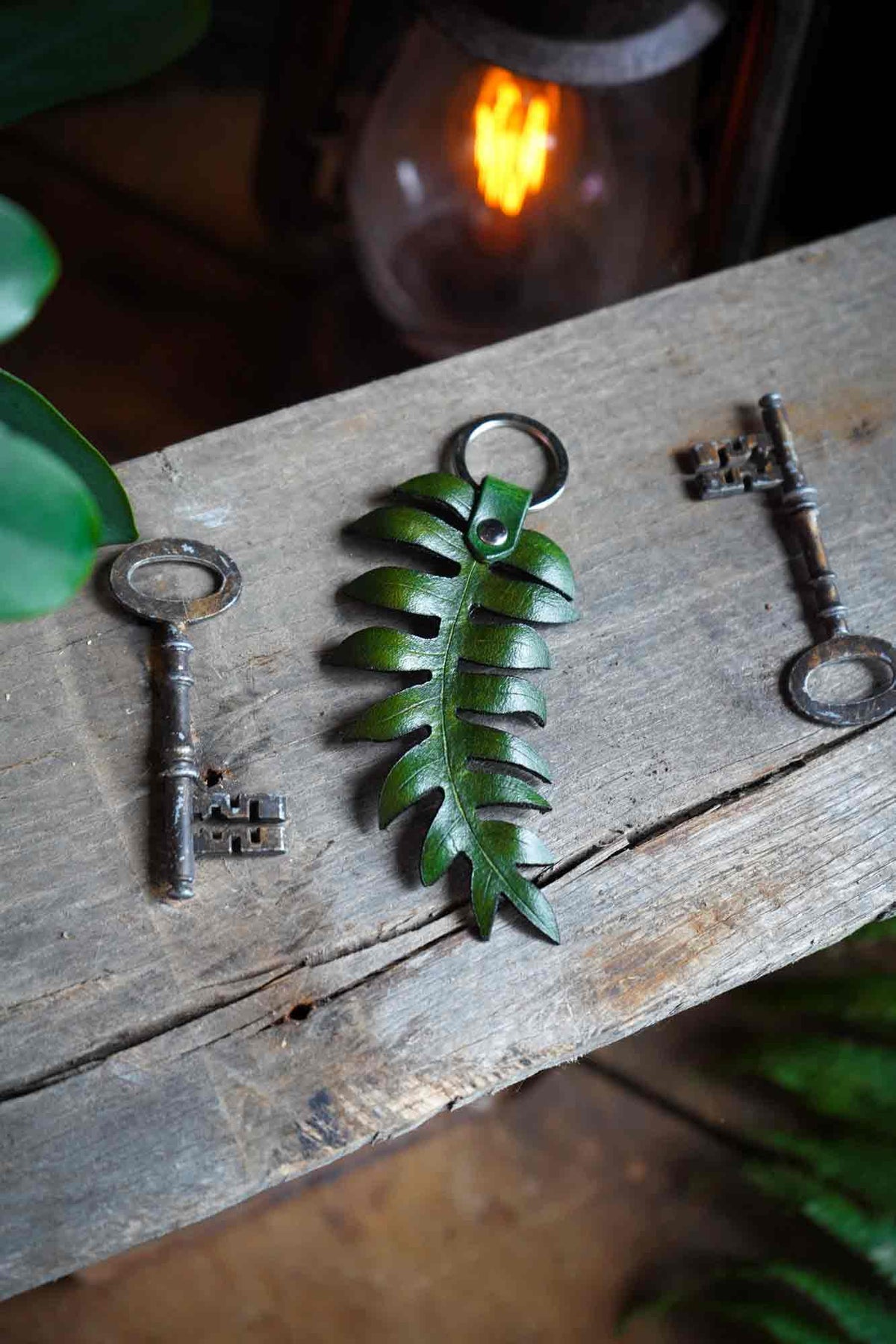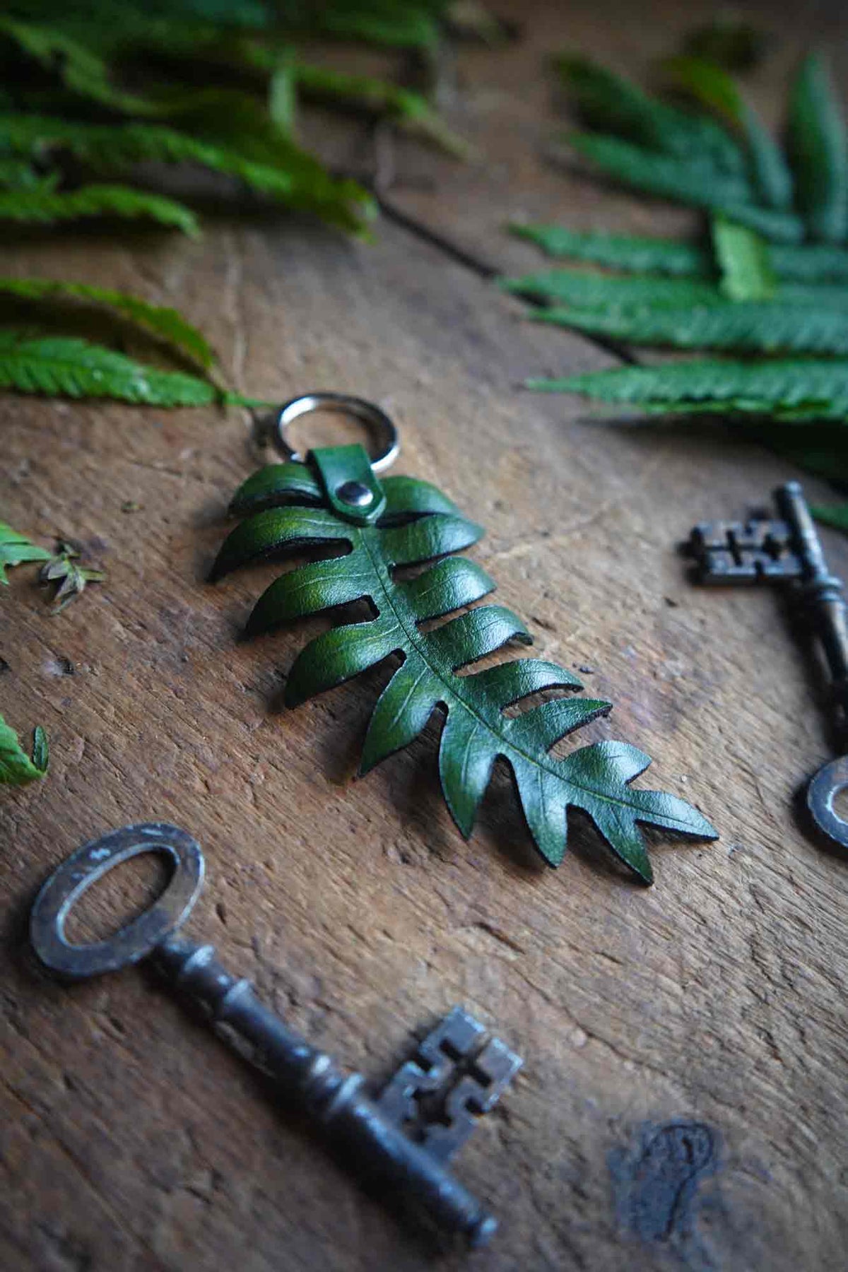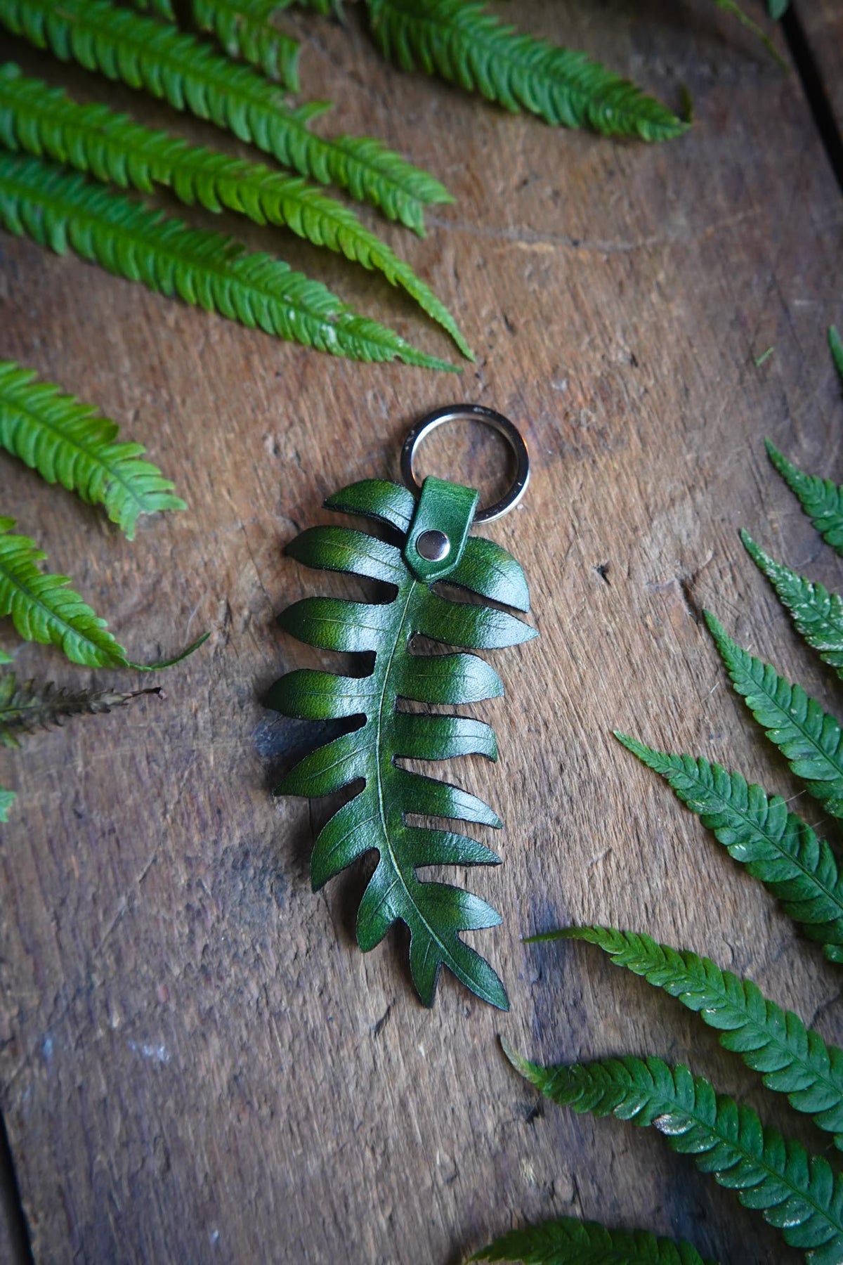 Take your greenery to go with our handmade Fern leather keychains. The perfect gift for any plant lover, these gorgeous green leaves will bring the forest floor to your key ring or make a bold bag charm.
