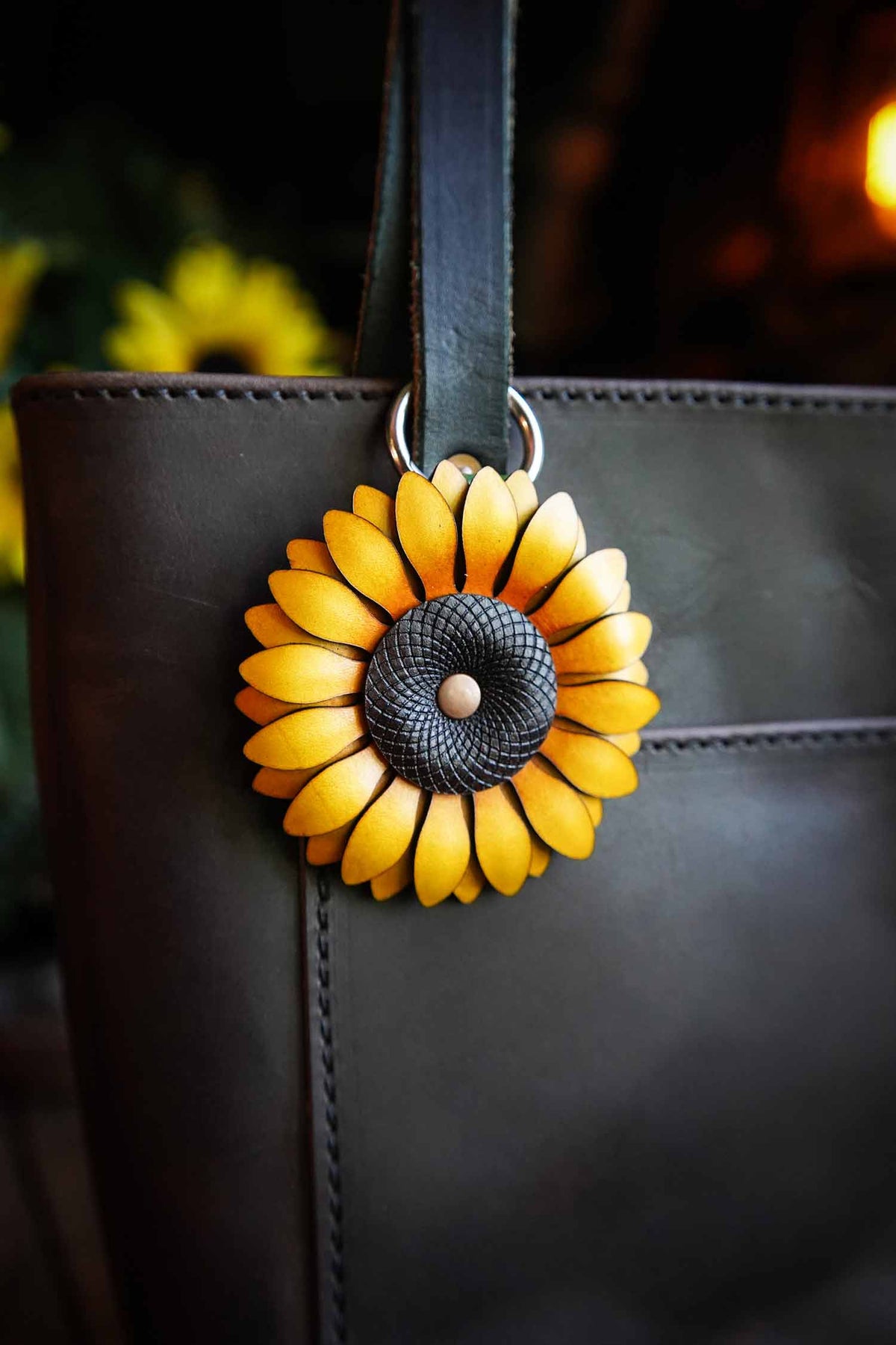 Sunflower - Leather Bag Charm or Keychain