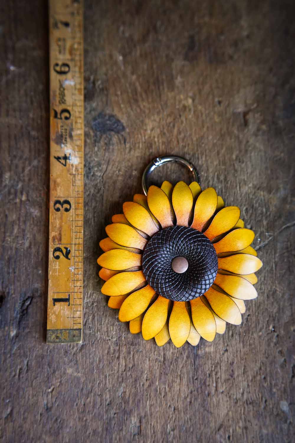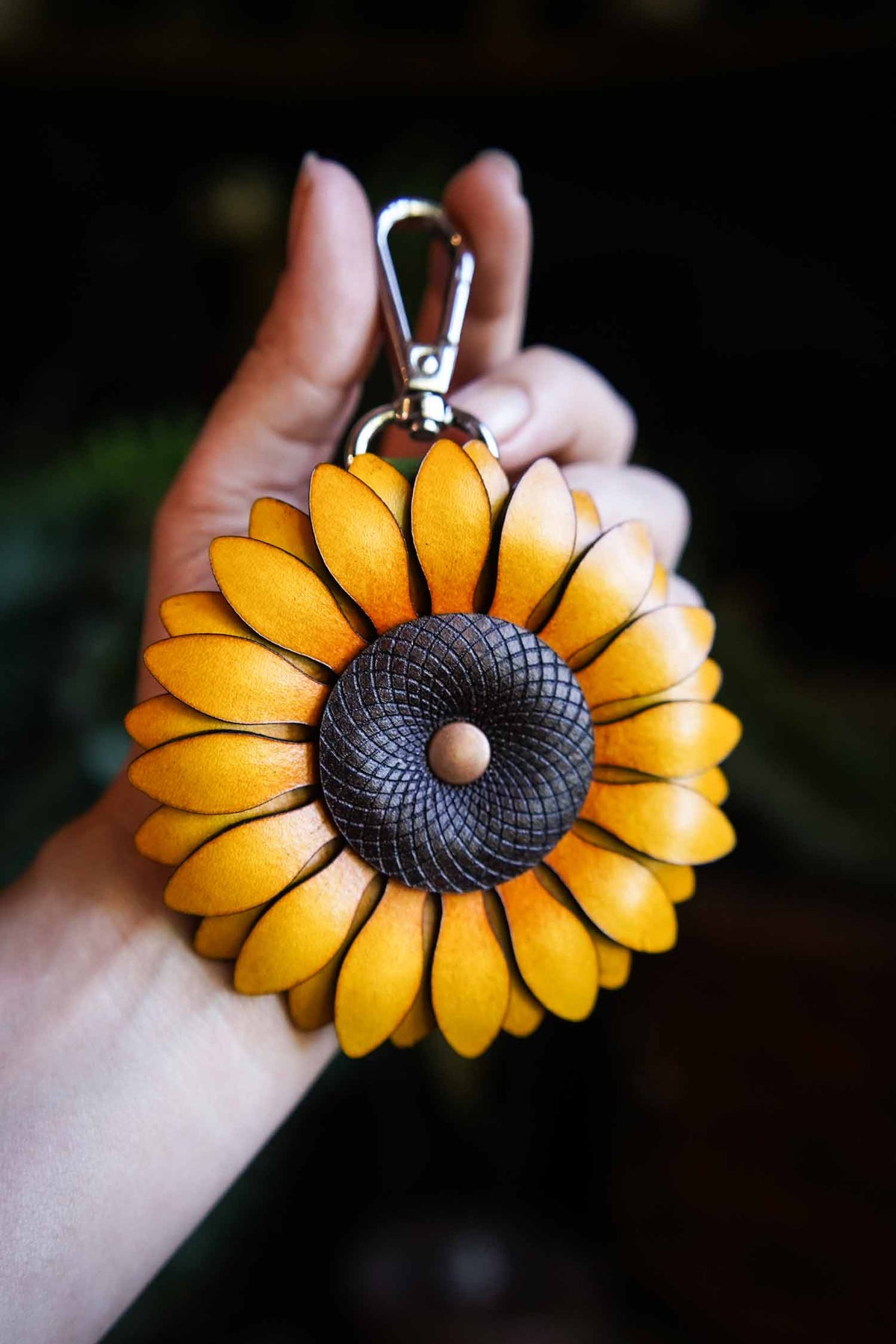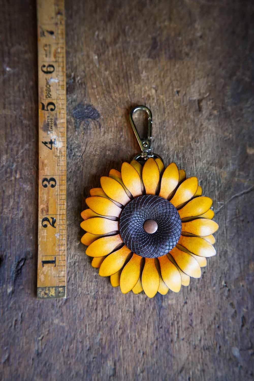 Our handmade sunflower leather bag charms are the perfect ray of sunshine to light up your days. Choose between a simple swivel hook or an opening O ring for clipping onto your bag handle! The perfect gift for the gardener in your life, these bright and cheerful sunflowers will bring a burst of happiness to your key ring or make a beautiful bag charm.
