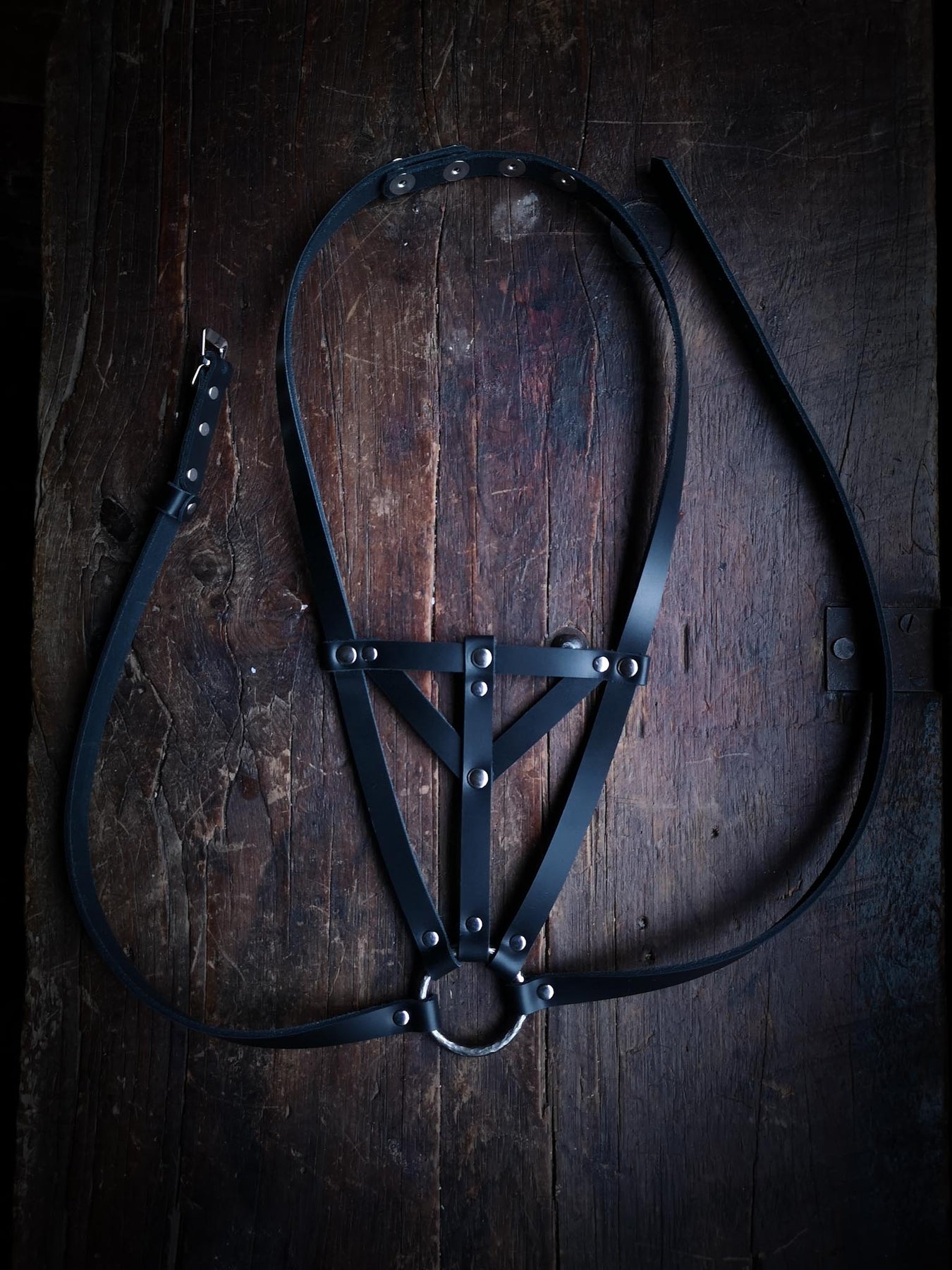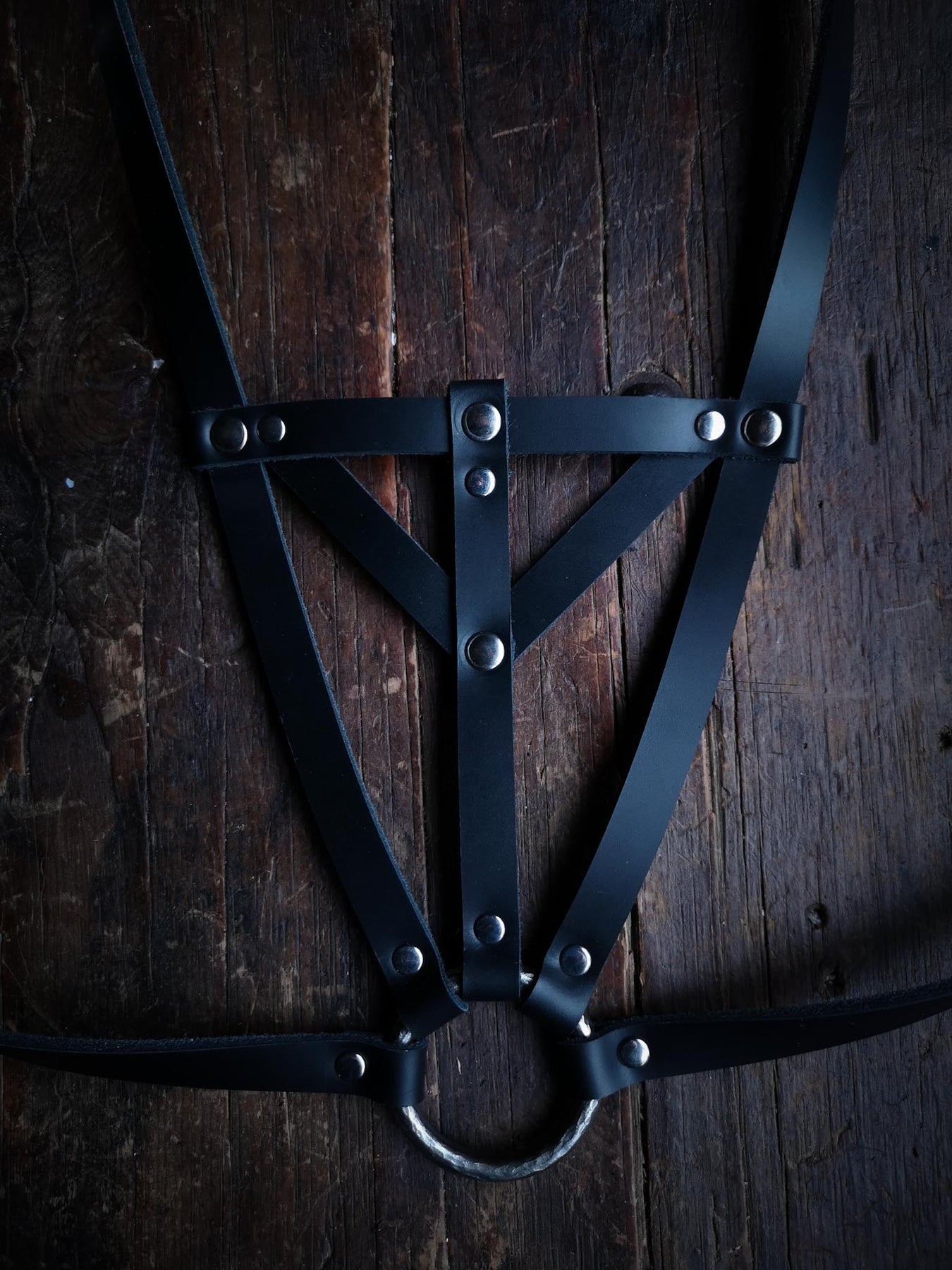 Drawn among the web of sturdy leather strapping you will find the lines of various runes and staves.