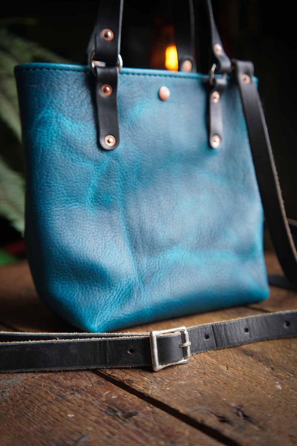 The straps are crafted of durable and thick English Bridle Vegetable tanned leather from Wickett and Craig, that just like the body of this bag will age like a fine wine. All bags are made with with black straps.