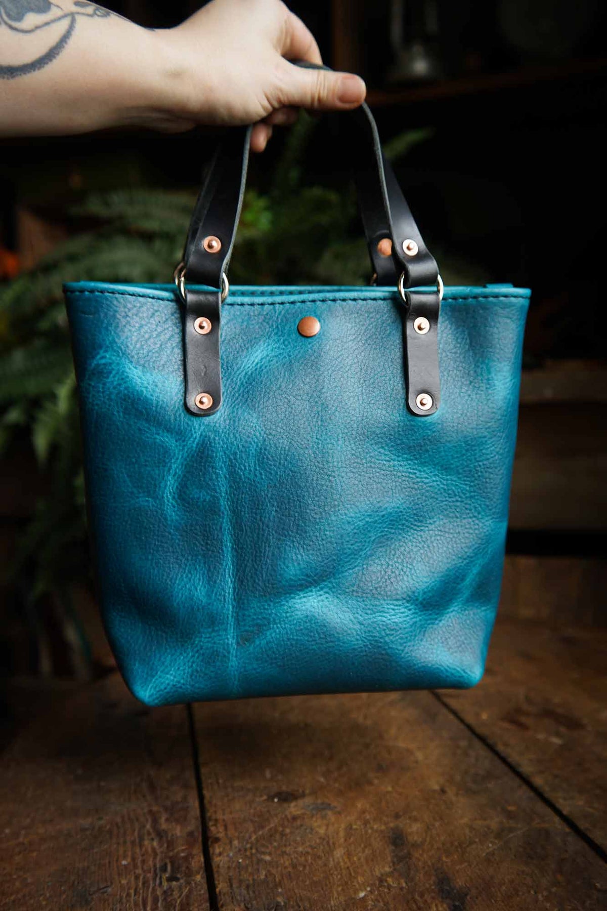 With ample space for your daily needs, this full grain leather bag features our standard interior slip pocket and two accessory clips to keep your essentials close at hand. Our heirloom quality totes are handcrafted with care, from the rolled top edge to the reinforced stress points, these leather bags are built to last.