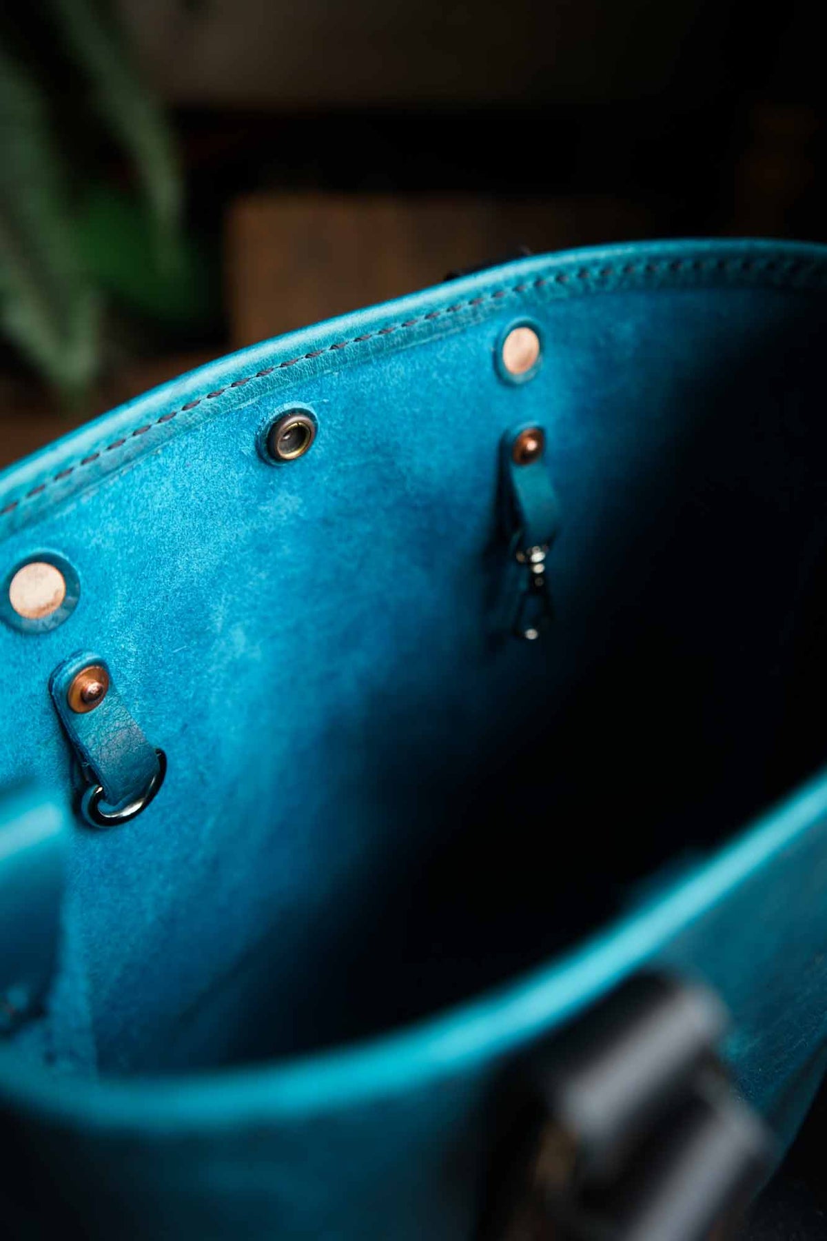 Mocha, Sapphire, Cinnabar, Slate, Spruce and Coal are an amazing oil tanned leather. This pebbled leather will lighten and contrast with scuffs and scratches revealing the true beauty and character of this bag. It is water resistant and ready to develop a patina making your bag completely unique to you.