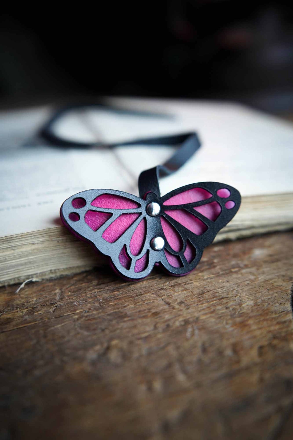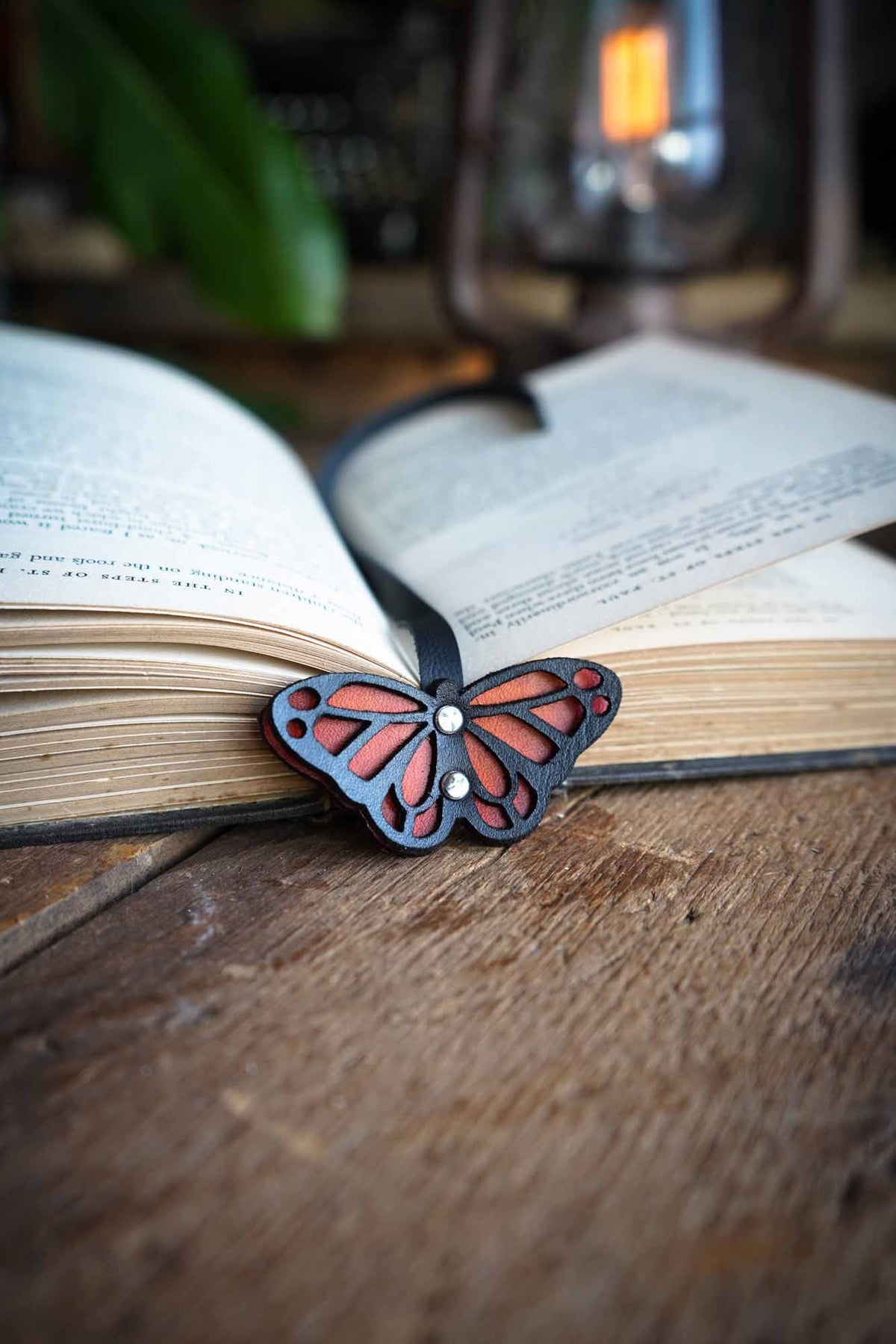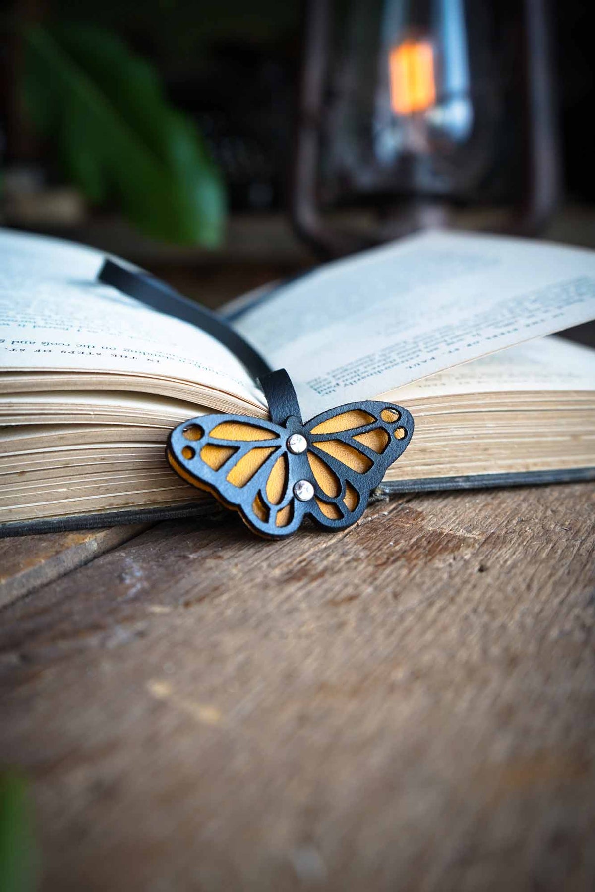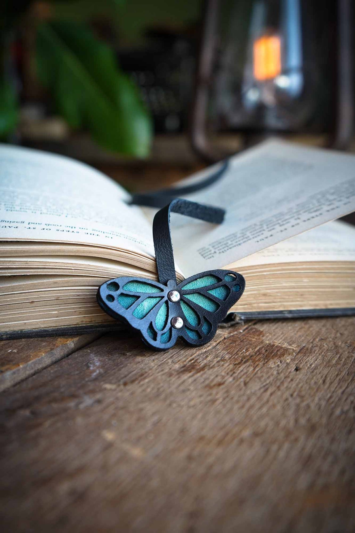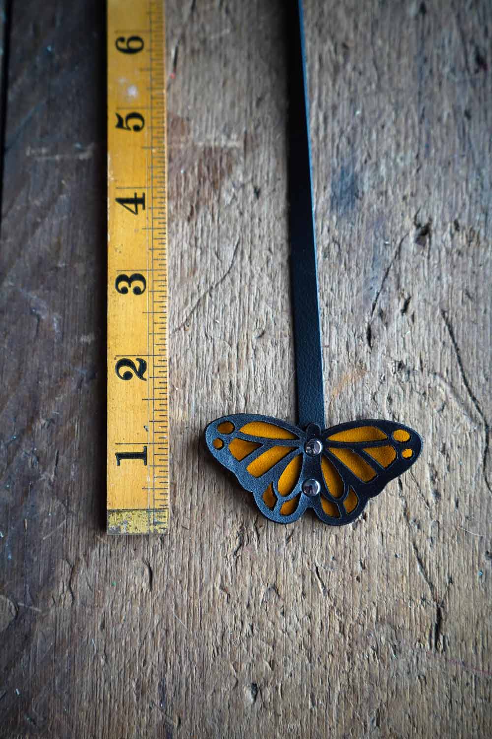 Our handmade recycled leather bookmarks are a favorite for good reason. Uniquely hand carved, the leather butterfly is riveted to soft and supple recycled leather that sits perfectly between the pages of your favorite book. Specifically designed not to slip out or leave unsightly bumps and bends like thicker leather bookmarks.