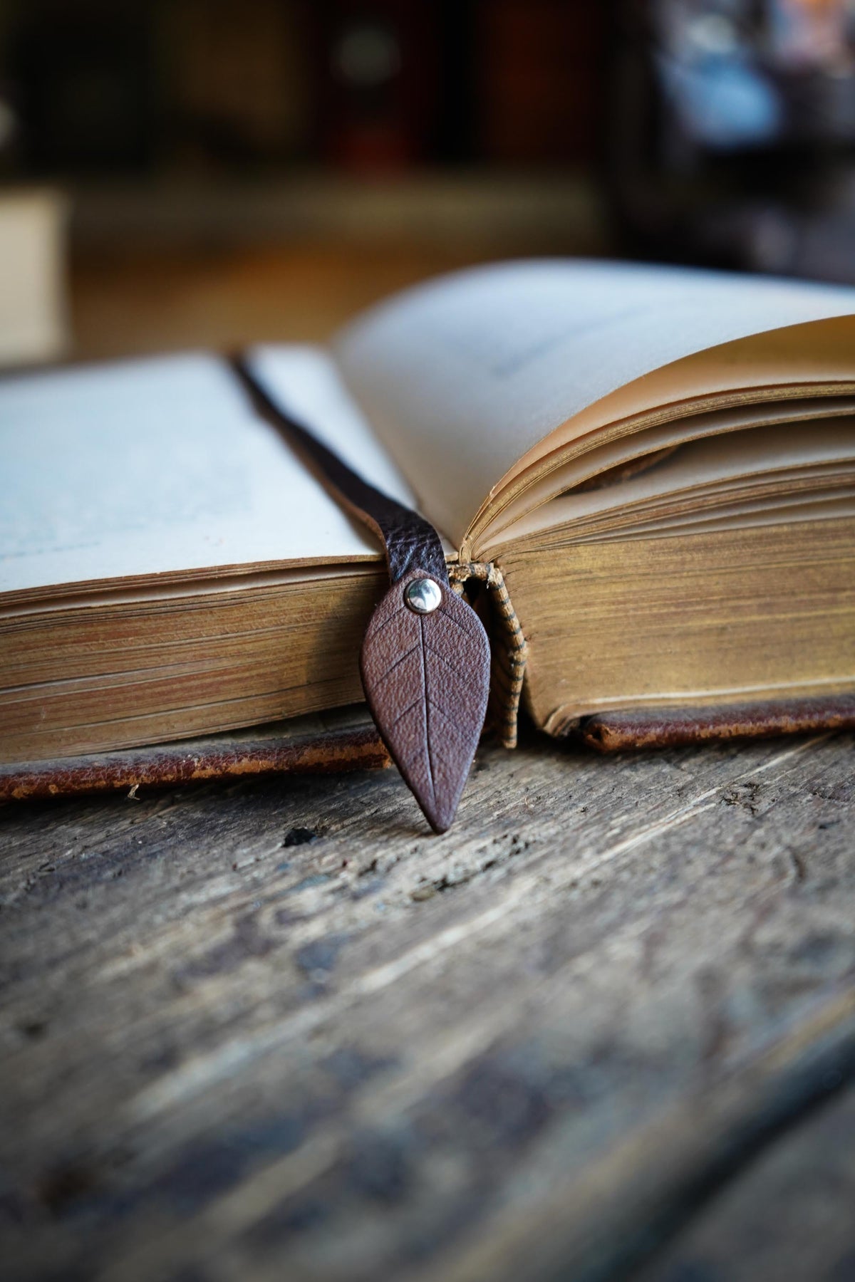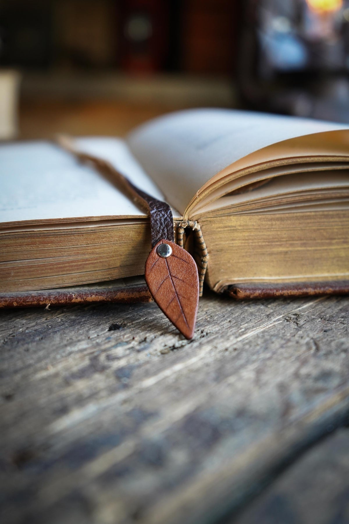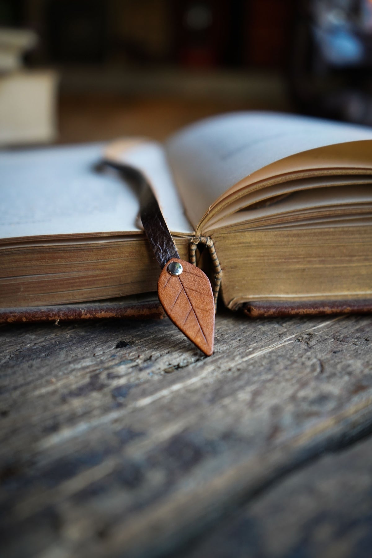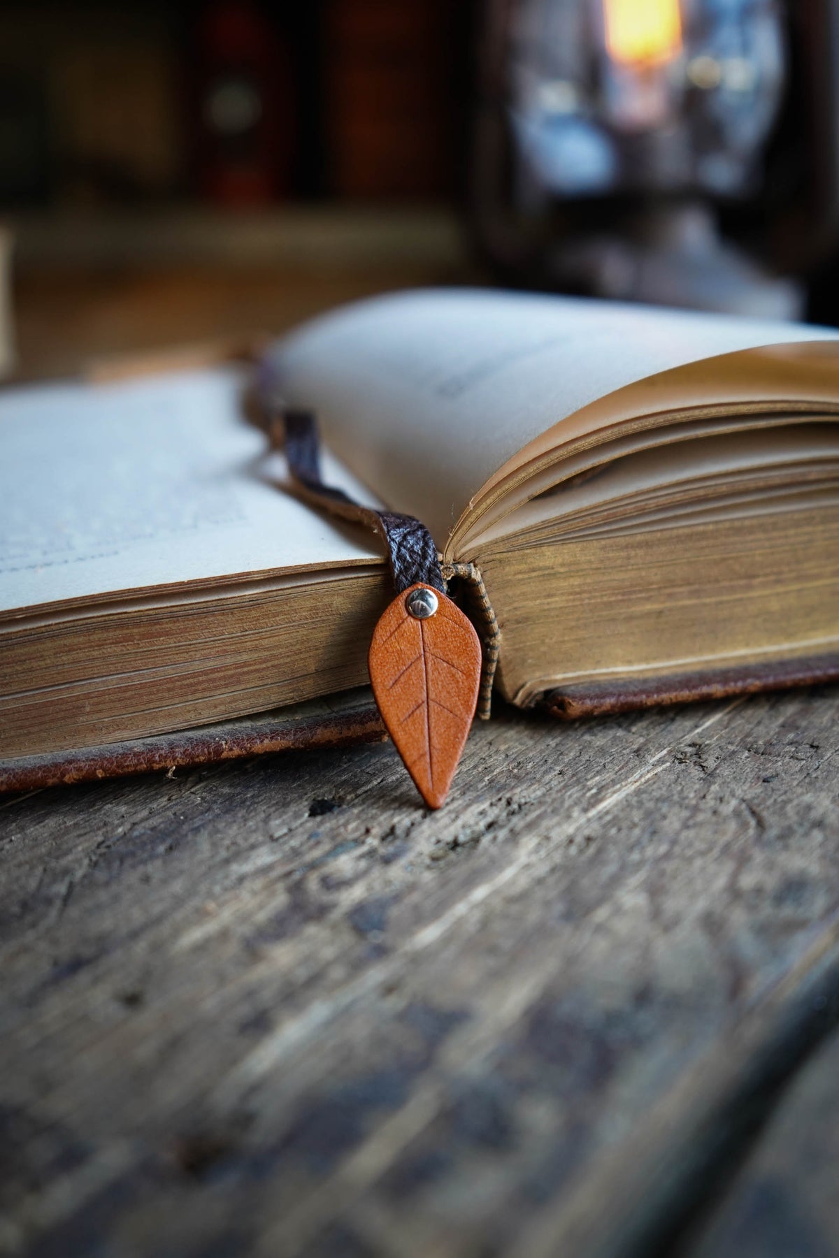 The rich browns of fall bring a warmth to our handcrafted leather leaf bookmark lineup.