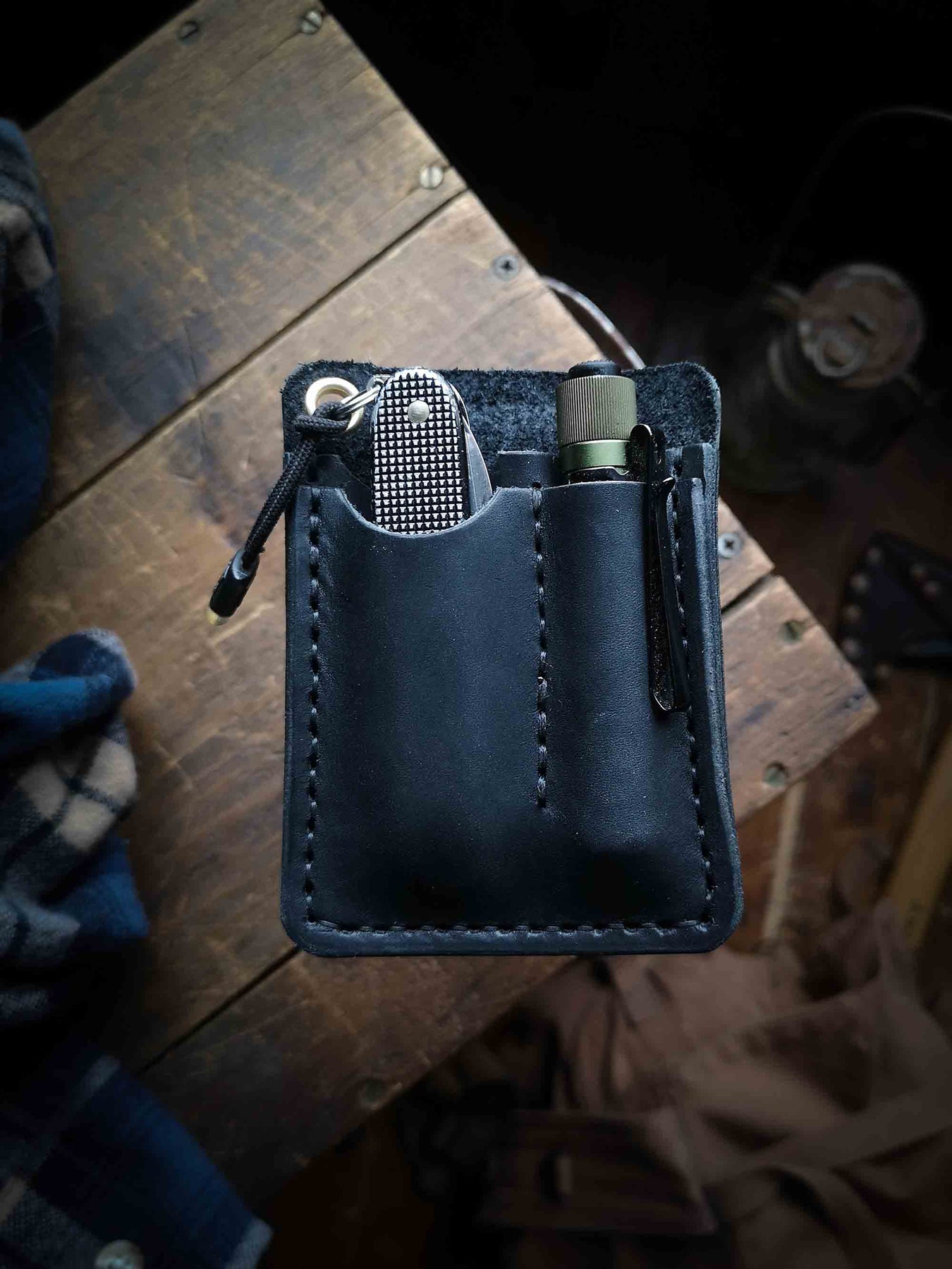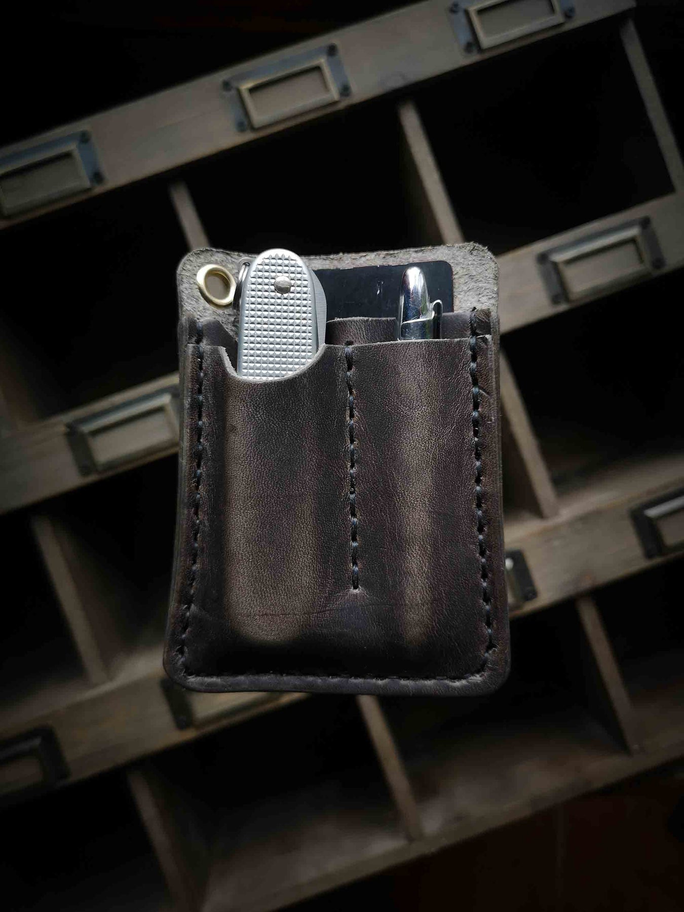 The well-rounded Wayfarer leather pocket organizer is designed to maximize your every day carry needs in a minimalist package. Combining asymmetrical tool slots as well an easy-access card and cash slot located on the front, the Wayfarer is a great way to carry your wallet as well as your go-to tools.