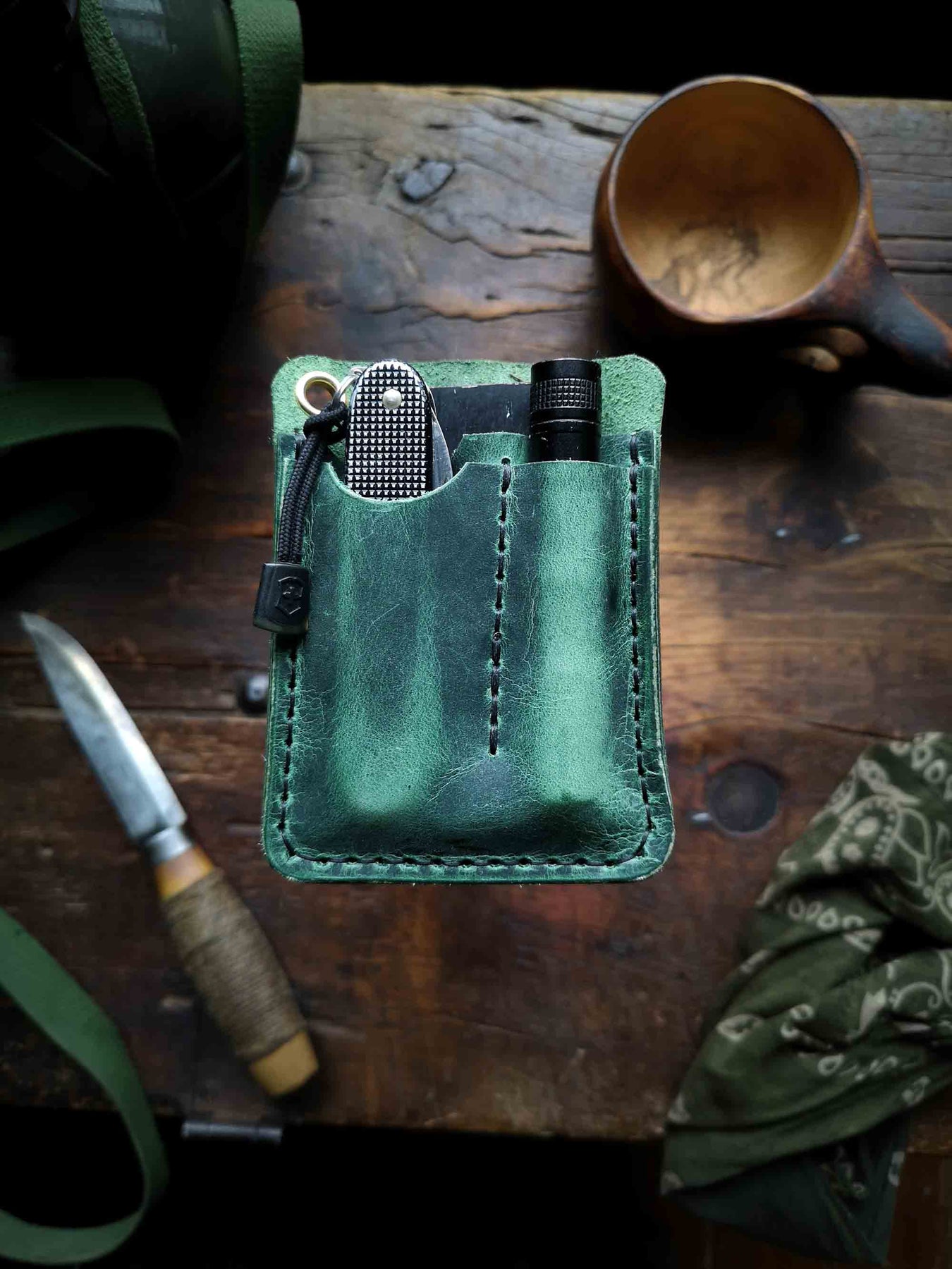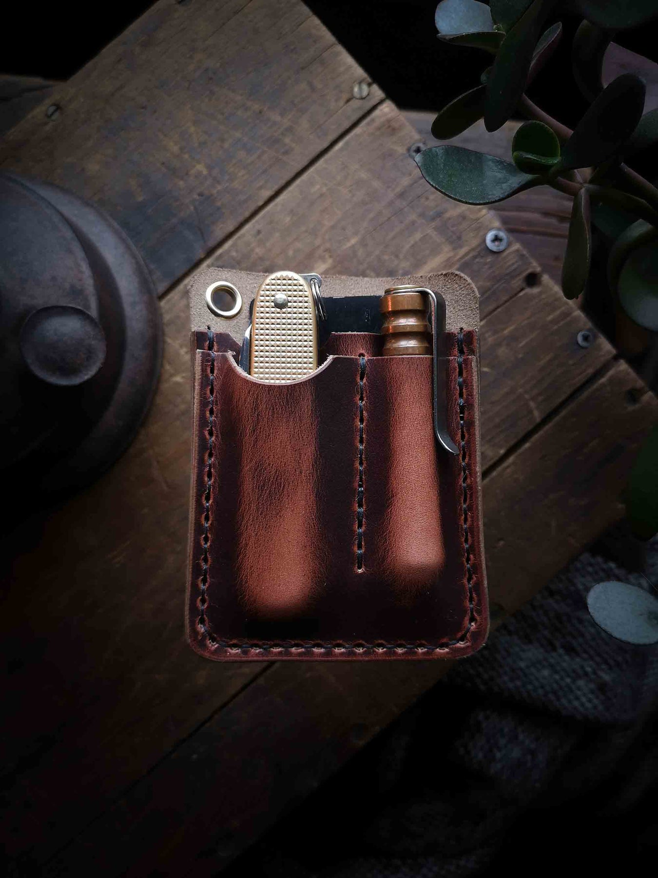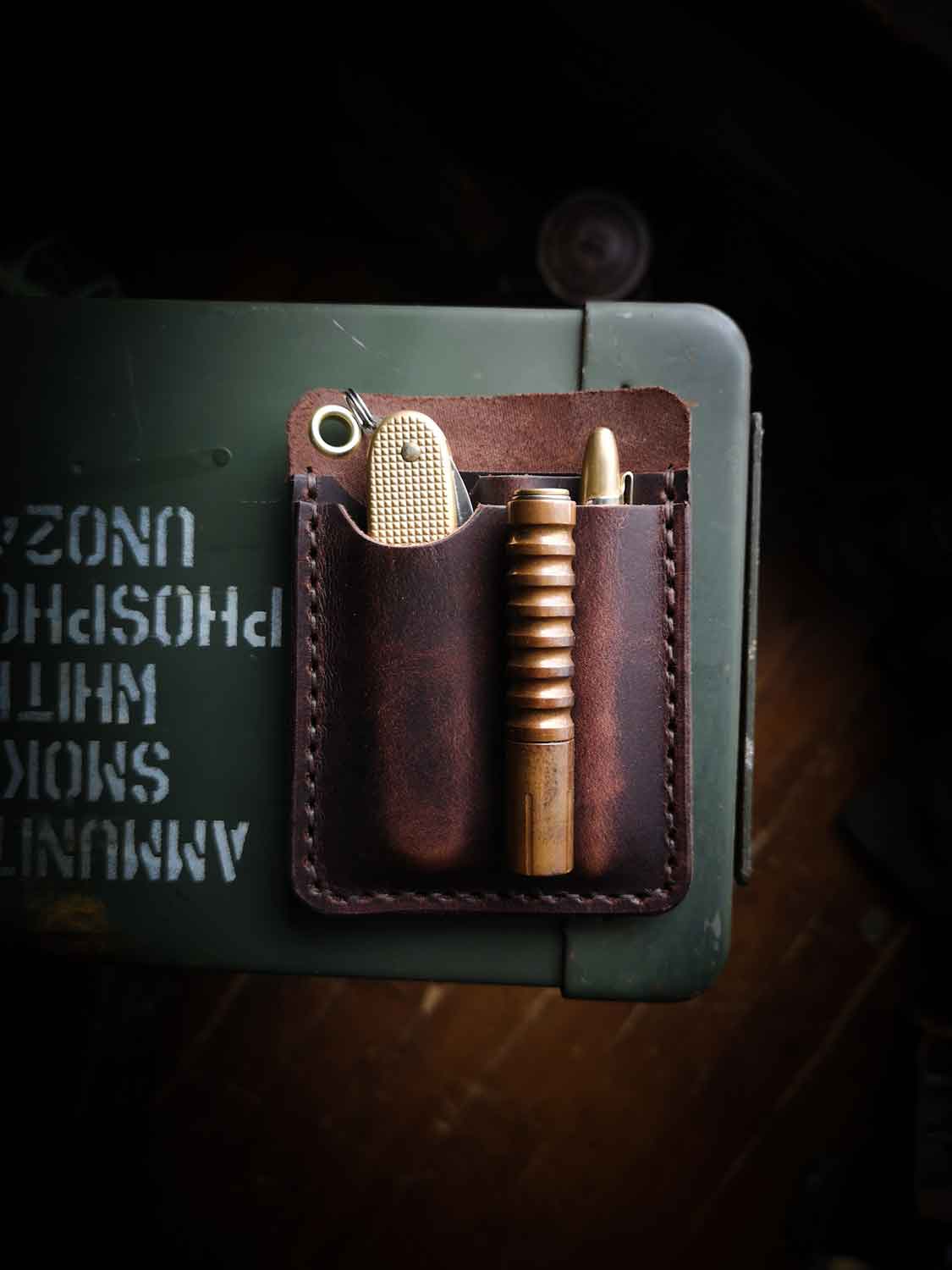 What makes our EDC pocket organizers stand out? Each one is crafted from full grain leather and entirely hand stitched for a lifetime of use. The Wayfarer features a solid brass grommet for attaching lanyards, belt chains or keyrings to keep your gear easily accessible and near at hand.